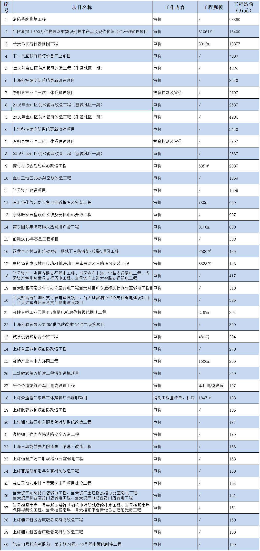 部分安装工程造价咨询业绩一览表