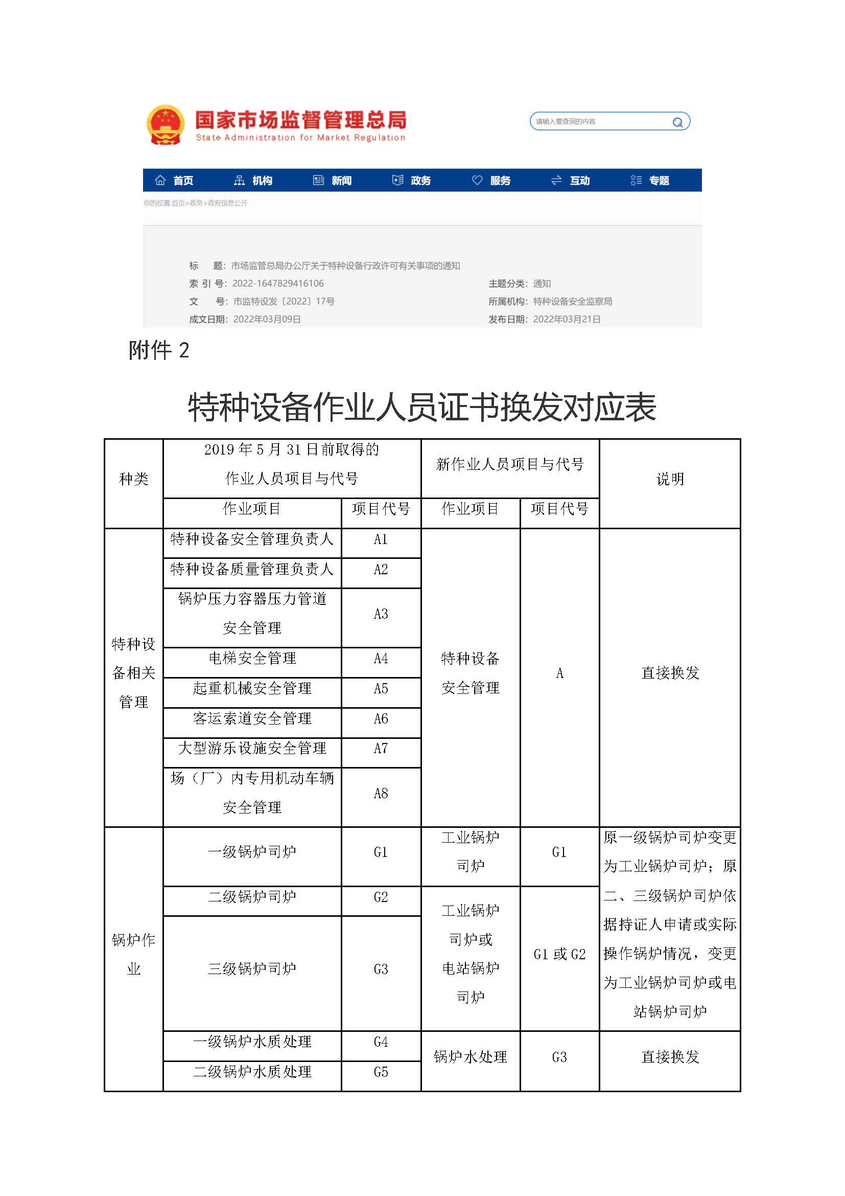 特种设备作业人员证书换发对应表