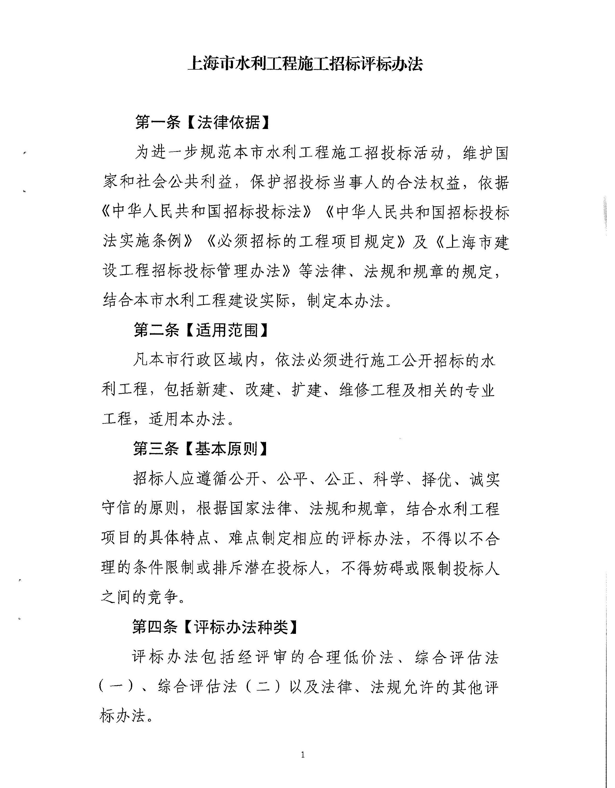 关于印发《上海市水利工程施工招标评标办法》的通知
